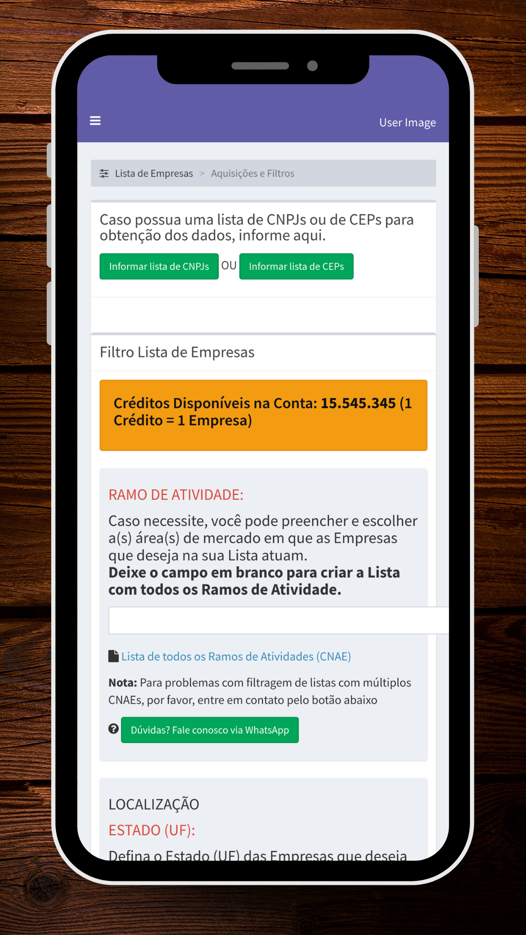 Entre em contato através de nosso WhatsApp para saber como ativar sua conta e começar a gerar suas listas de empresas personalizadas.
